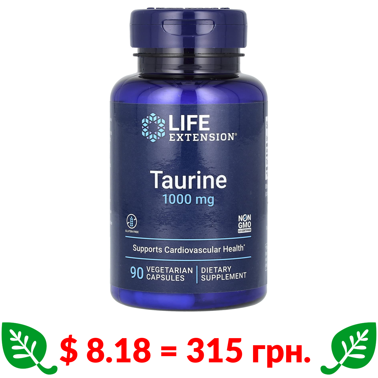$ 8.18 = 315 грн. ????️ у кошику ????️ Life Extension, Таурин, 1000 мг, 90 вегетарианских капсул