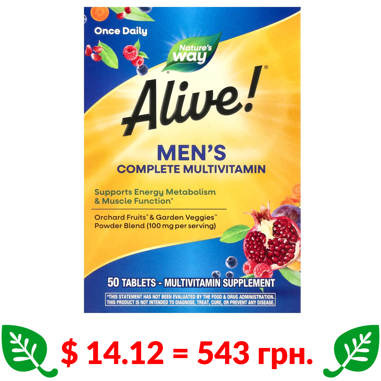 $ 14.12 = 543 грн. Натурес Вэй, Alive !, мультивитаминный комплекс для мужчин, 50 таблеток