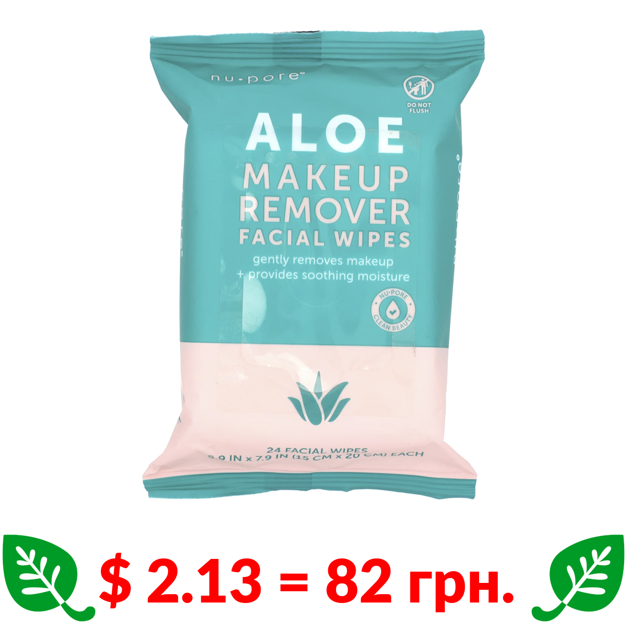 $ 2.13 = 82 грн. Юнайтэд Эксчэндж, Средство для снятия макияжа с алоэ, 24 влажных салфетки