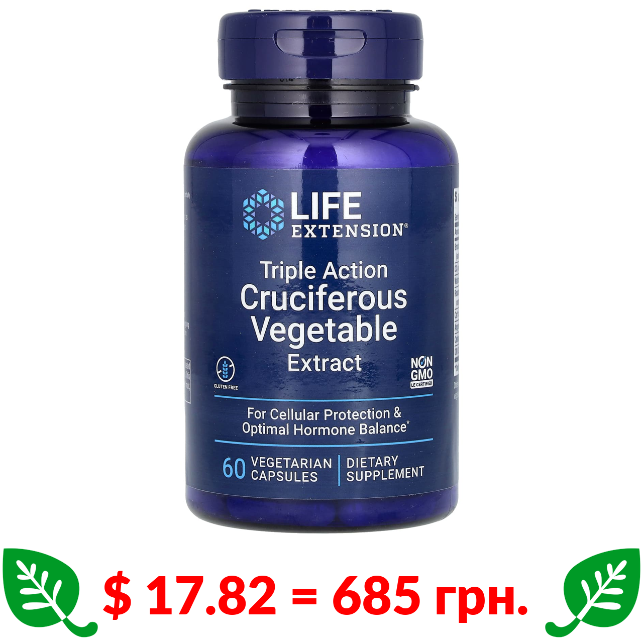 $ 17.82 = 685 грн. ????️ у кошику ????️ Life Extension, экстракт крестоцветных овощей тройного действия, 60 вегетарианских капсул