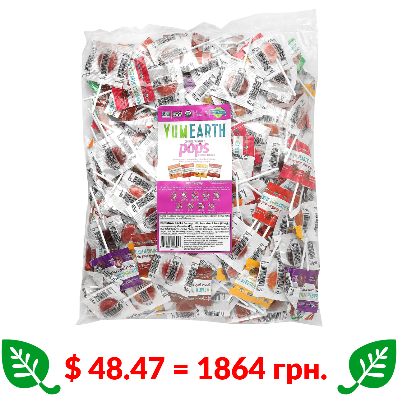 $ 48.47 = 1864 грн. ????️ у кошику ????️ YumEarth, Органические леденцы, витамин C, ассорти, 1588 г (3,5 фунта)