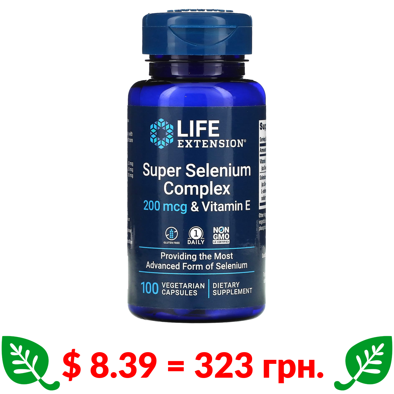 $ 8.39 = 323 грн. ????️ у кошику ????️ Life Extension, суперкомплекс селена с витамином E, 200 мкг, 100 вегетарианских капсул