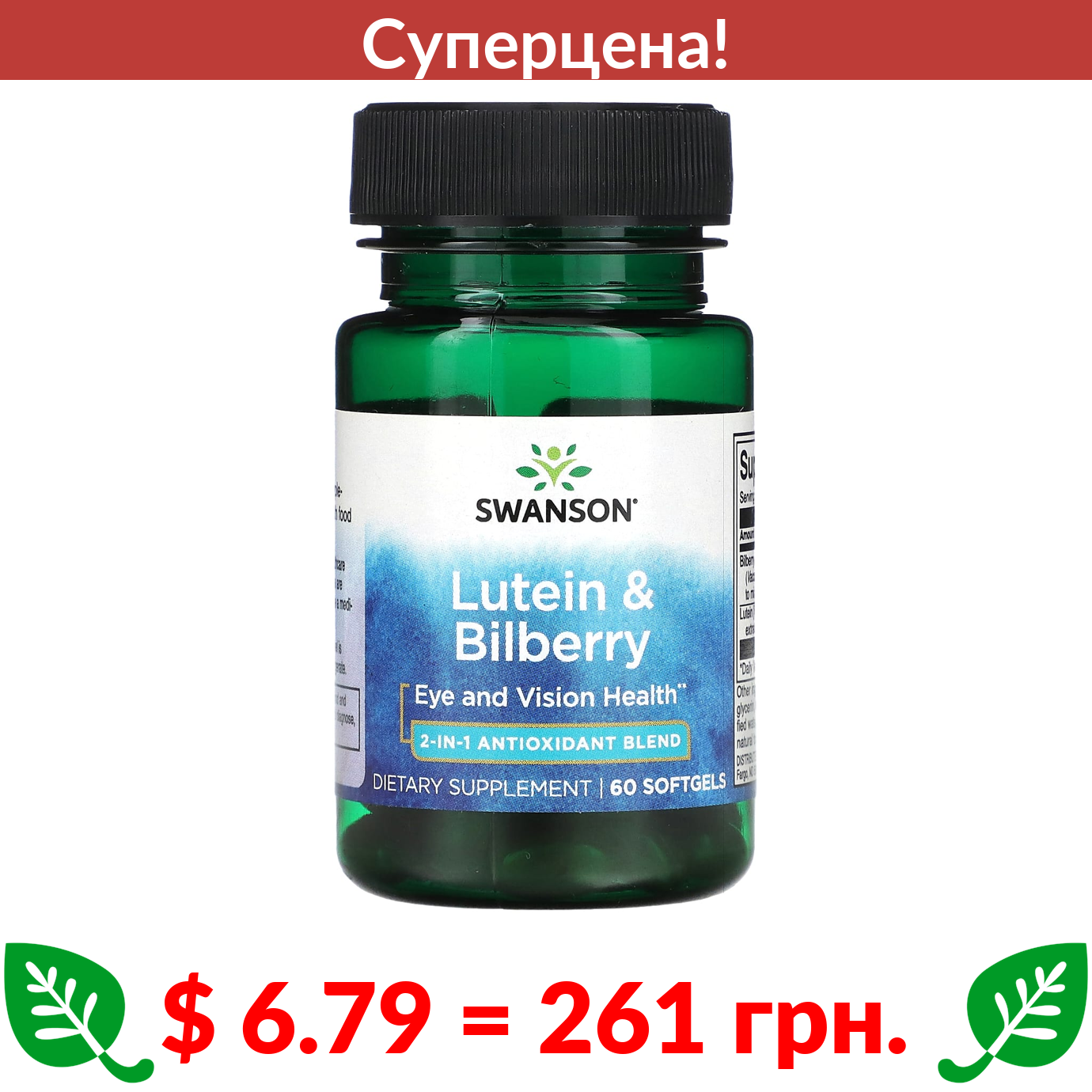 $ 6.79 = 261 грн. ???? cуперакція! ???? Swanson, Лютеин и черника, 60 мягких таблеток