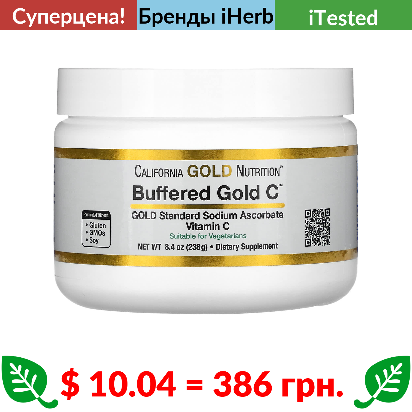 $ 10.04 = 386 грн. ???? cуперакція! ???? California Gold Nutrition, Buffered Gold C, некислый витамин C в порошке, аскорбат натрия, 238 г (8,40 унции)