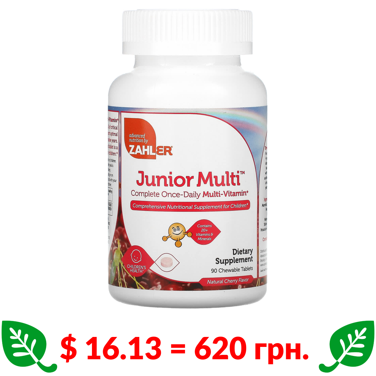 $ 16.13 = 620 грн. Zahler, Junior Multi, комплексный мультивитамин для приема по 1 таблетке в день, натуральный вишневый вкус, 90 жевательных таблеток