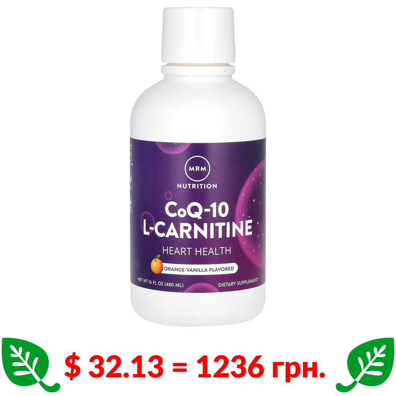 $ 32.13 = 1236 грн. MRM Nutrition, жидкий коэнзим Q-10 и L-карнитин, апельсин и ваниль, 480 мл (16 жидк. унций)