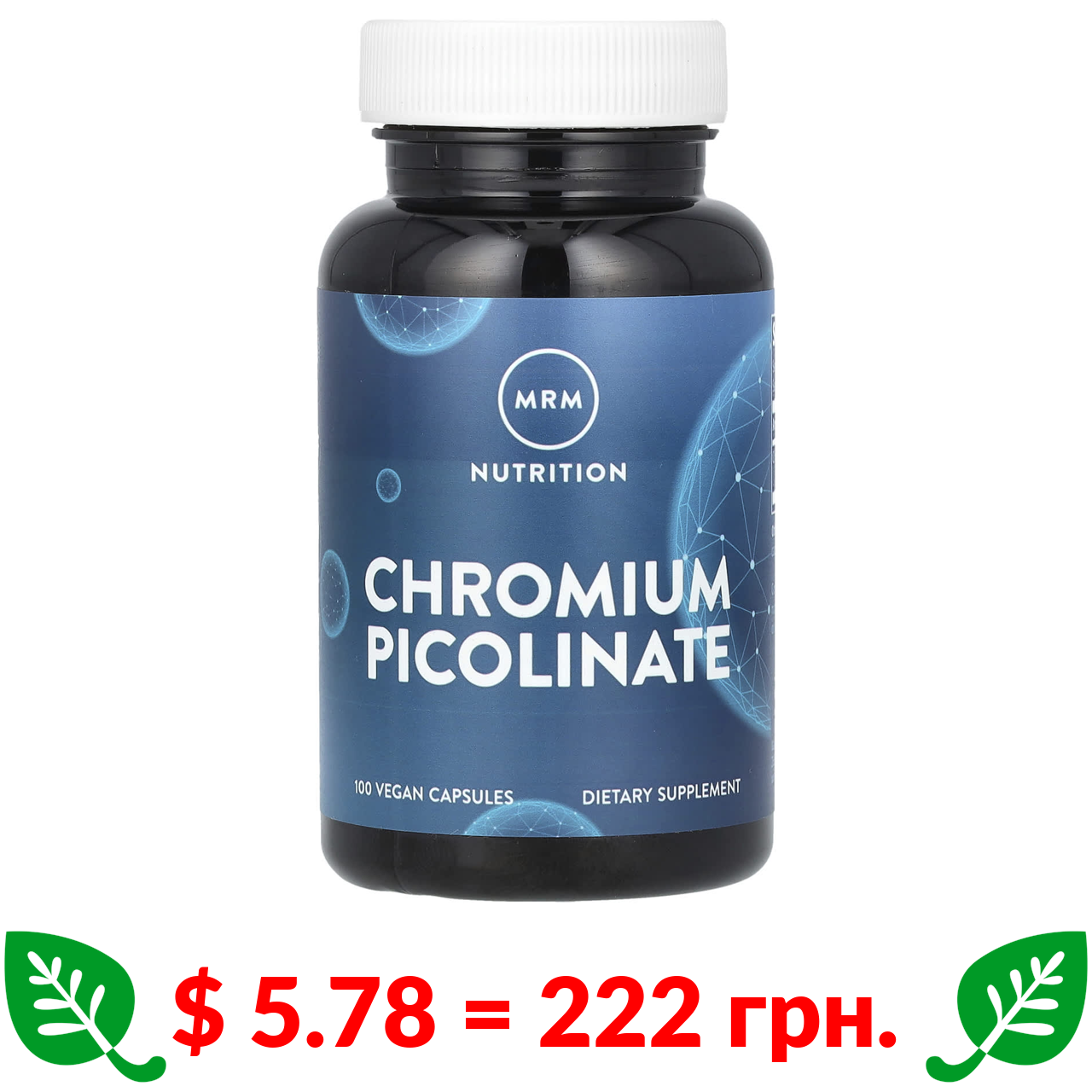 $ 5.78 = 222 грн. MRM Nutrition, Nutrition, пиколинат хрома, 200 мкг, 100 веганских капсул