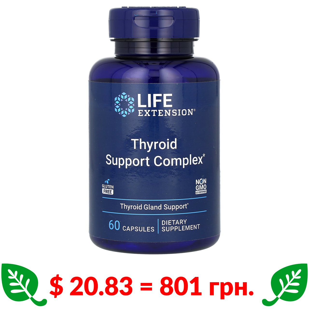 $ 20.83 = 801 грн. ????️ у кошику ????️ Life Extension, комплекс для поддержки здоровья щитовидной железы, 60 капсул