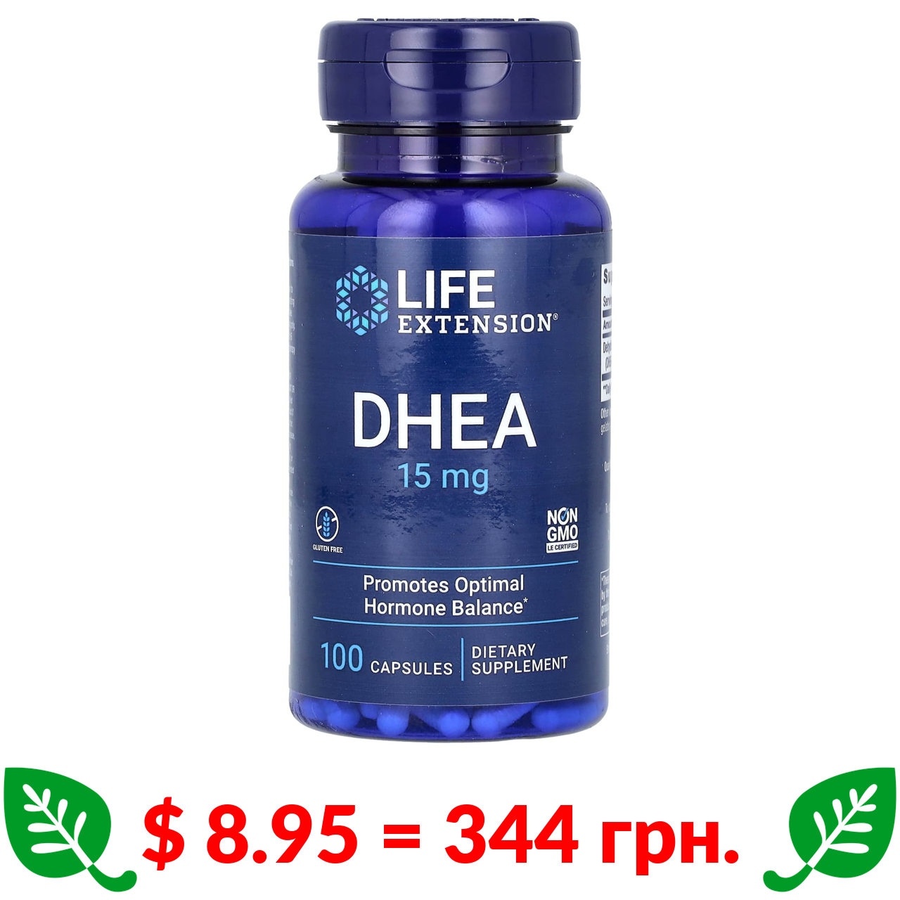 $ 8.95 = 344 грн. ????️ у кошику ????️ Life Extension, ДГЭА, 15 мг, 100 капсул