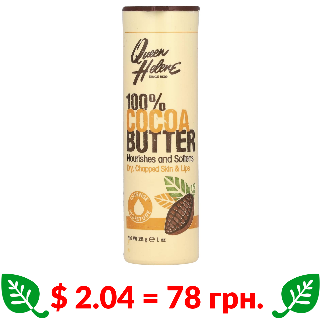 $ 2.04 = 78 грн. Квин Хелен, 100% какао-масло, 28 г (1 унция)
