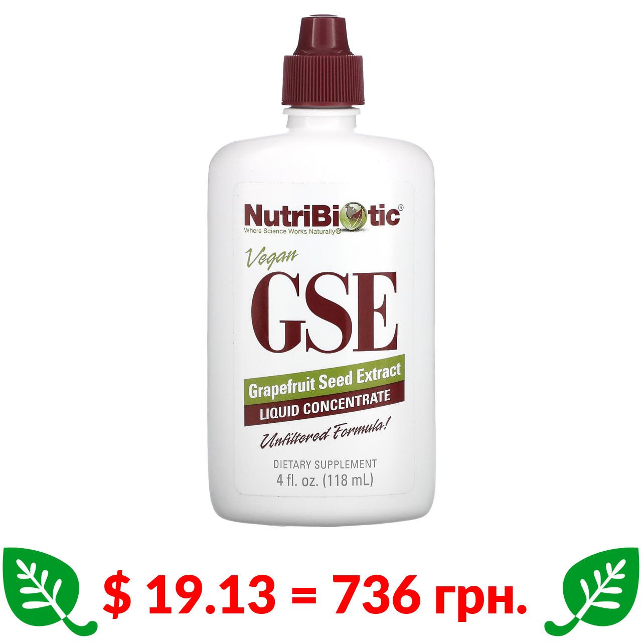 $ 19.13 = 736 грн. НутриБиотик, веганский экстракт семян грейпфрута GSE, жидкий концентрат, 118 мл (4 жидк. унции)