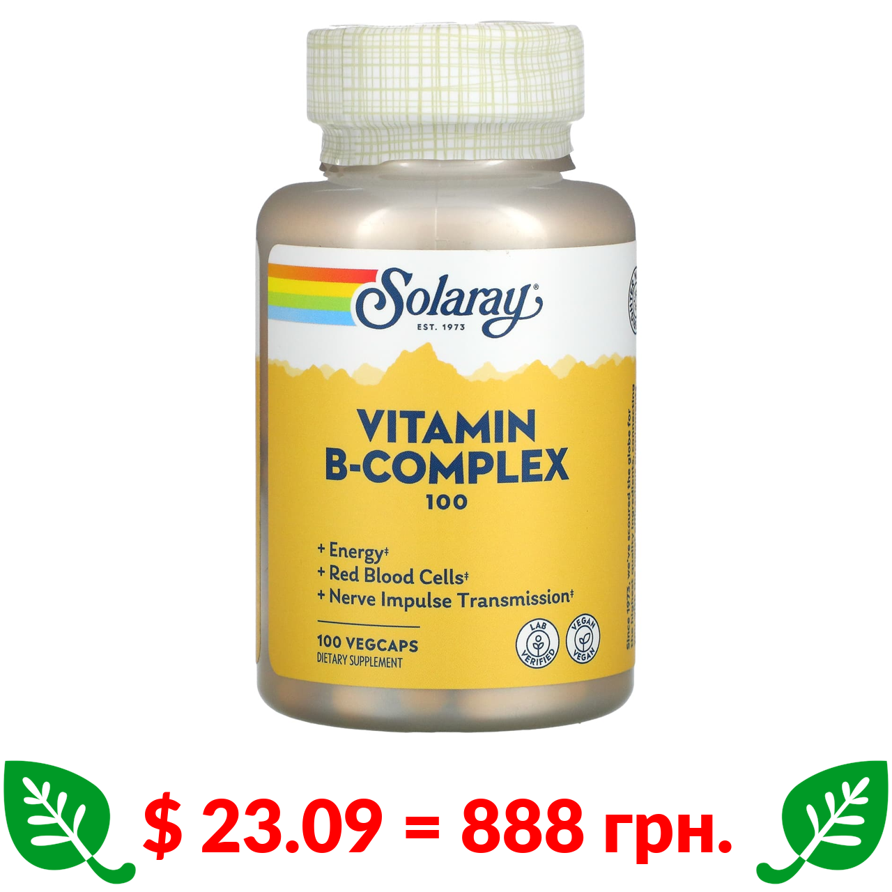 $ 23.09 = 888 грн. Соларай, B-комплекс 100, 100 вегетарианских капсул