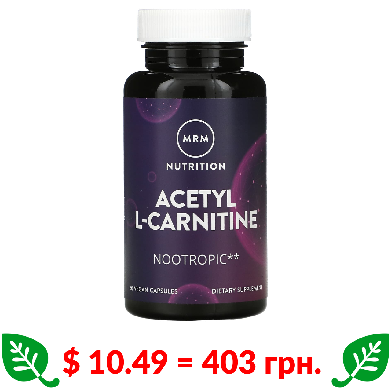 $ 10.49 = 403 грн. MRM Nutrition, Nutrition, ацетил-L-карнитин, 60 веганских капсул