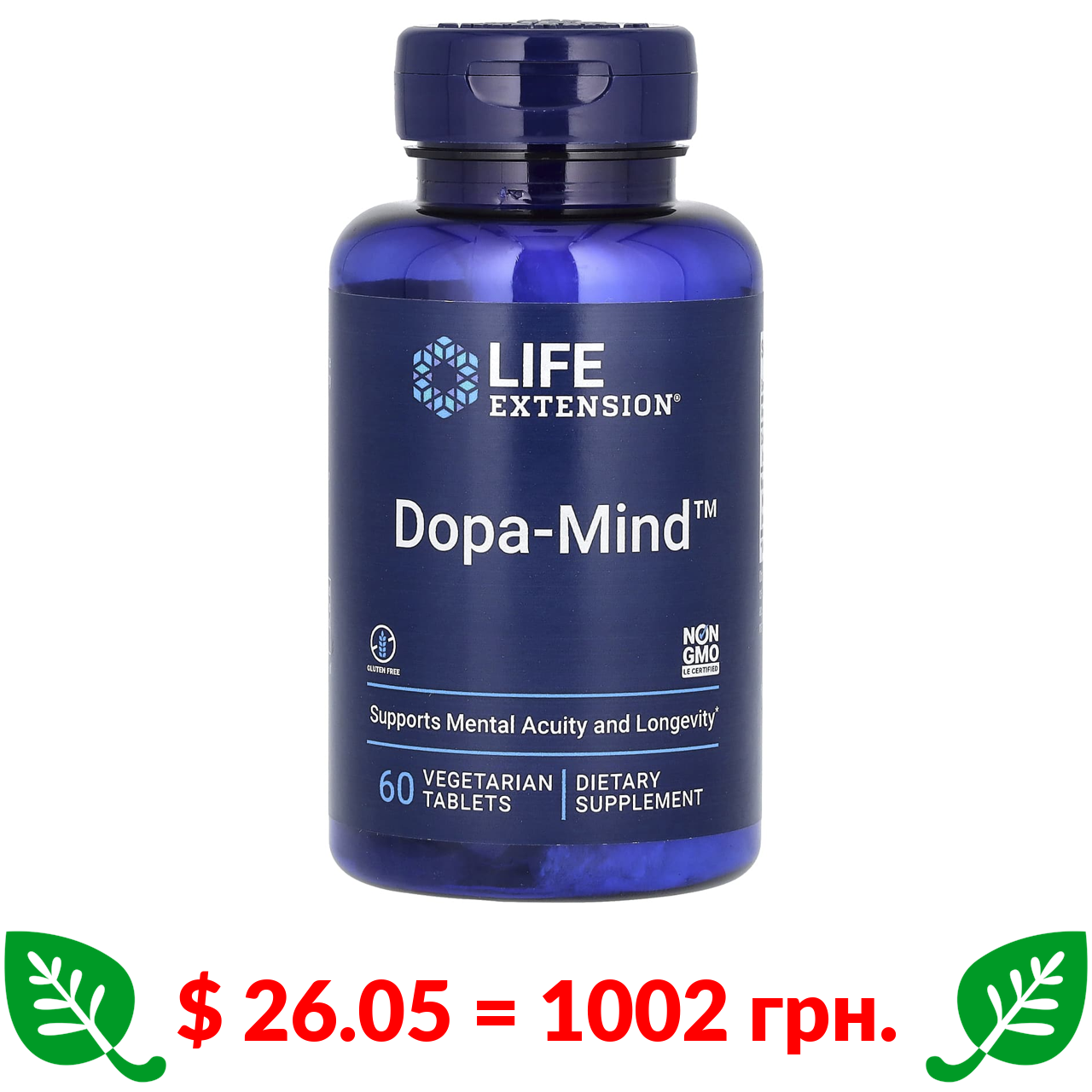 $ 26.05 = 1002 грн. ????️ у кошику ????️ Life Extension, Dopa-Mind, 60 вегетарианских таблеток