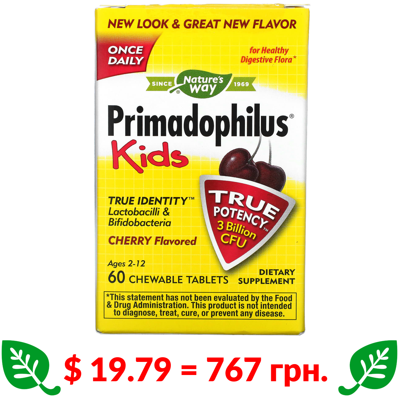 $ 19.79 = 767 грн. Натурес Вэй, Primadophilus для детей со вкусом вишни, 60 жевательных таблеток