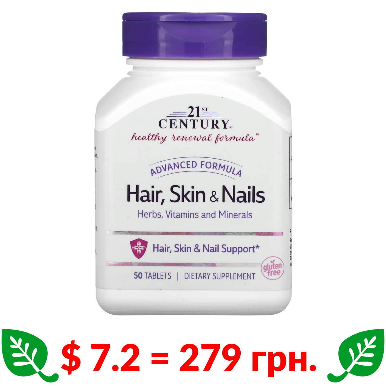 $ 7.2 = 279 грн. 21st Century, Волосы, кожа и ногти, усовершенствованная формула, 50 таблеток