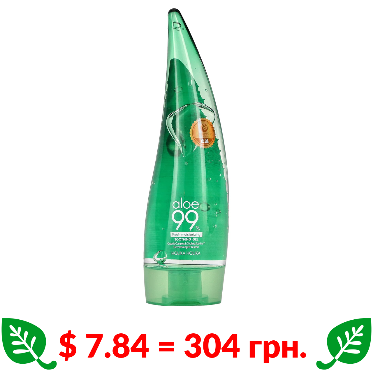 $ 7.84 = 304 грн. Холика Холика, Увлажняющий, освежающий и успокаивающий гель, алоэ 99%, 250 мл (8,45 жидк. унции)