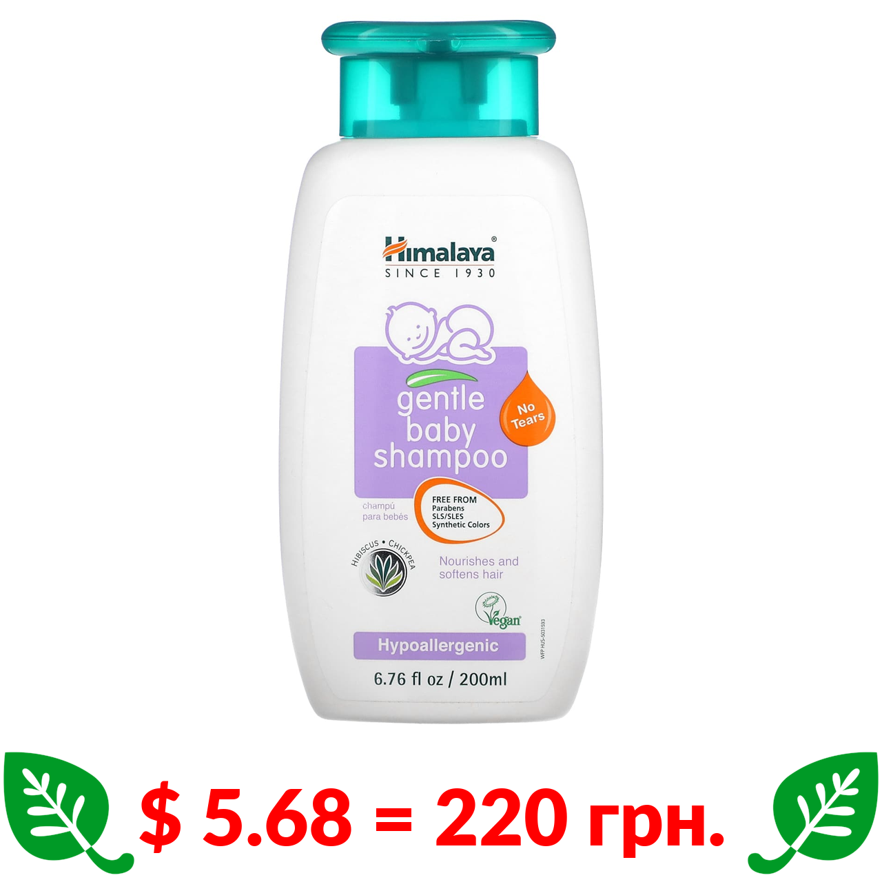 $ 5.68 = 220 грн. Himalaya, Нежный Детский Шампунь, Гибискус и Нут, 6,76 жидких унций (200 мл)