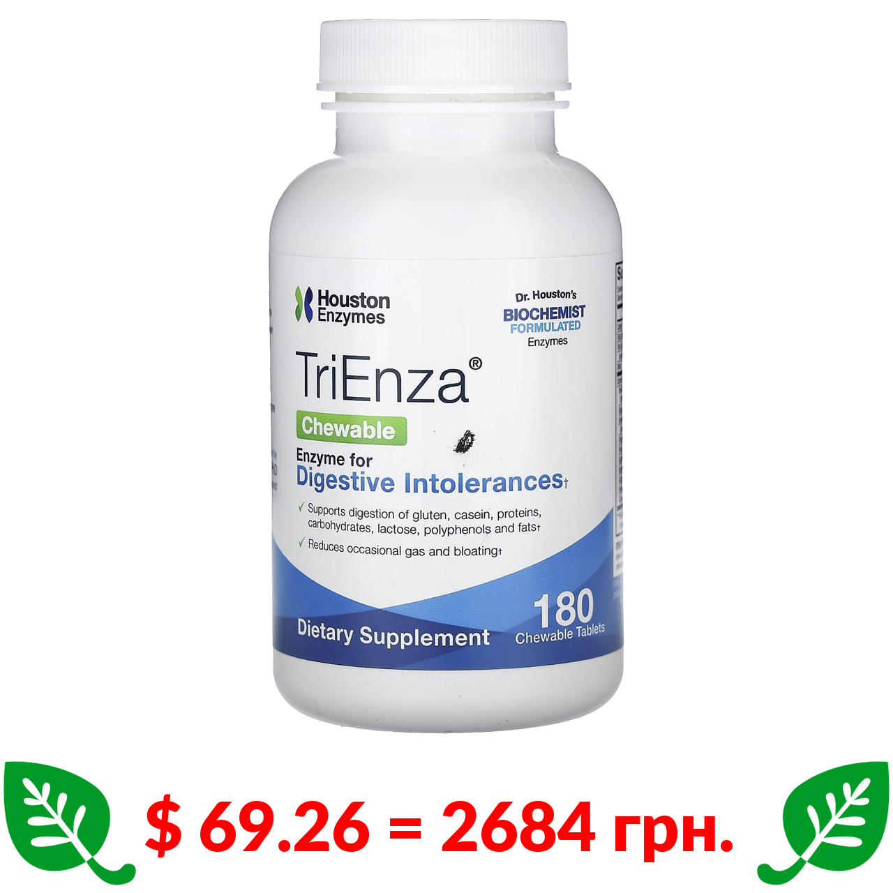 $ 69.26 = 2684 грн. Houston Enzymes, Жевательные таблетки TriEnza, 180 жевательных таблеток