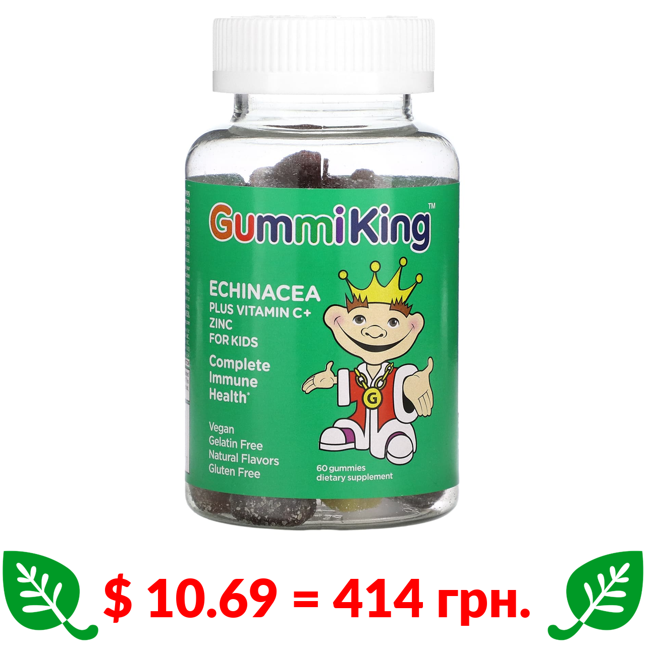 $ 10.69 = 414 грн. Гумми Кинг, эхинацея, витамин C и цинк для детей, вкус клубники, апельсина, лимона, винограда, вишни и грейпфрута, 60 жевательных таблеток
