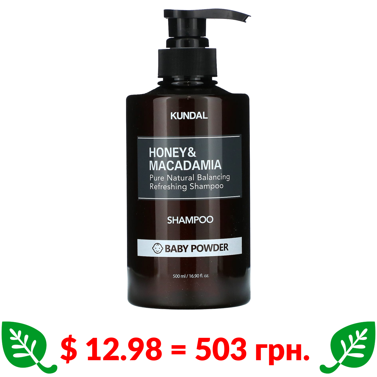 $ 12.98 = 503 грн. Кундал, мед и макадамия, шампунь, детская присыпка, 500 мл (16,90 жидк. унции)
