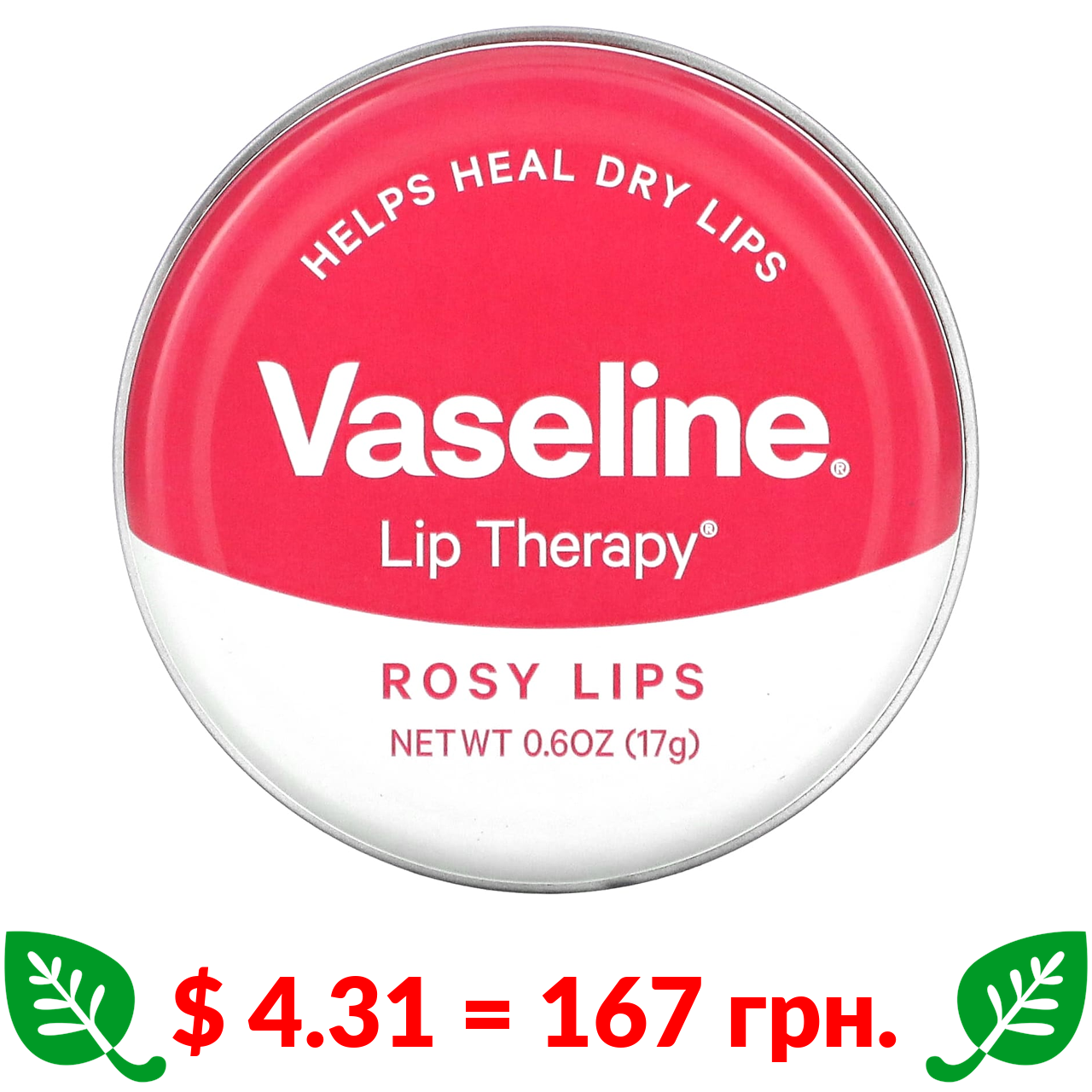 $ 4.31 = 167 грн. Вазелин, Lip Therapy, розовые губы, 17 г (0,6 унции)