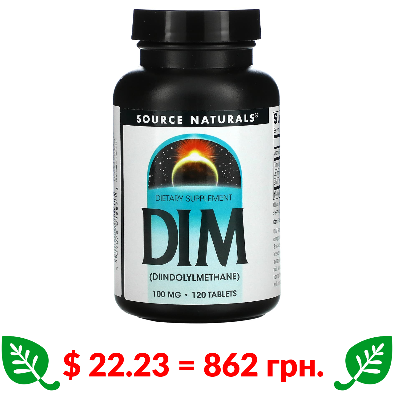 $ 22.23 = 862 грн. Source Naturals, DIM (дииндолилметан), 100 мг, 120 таблеток