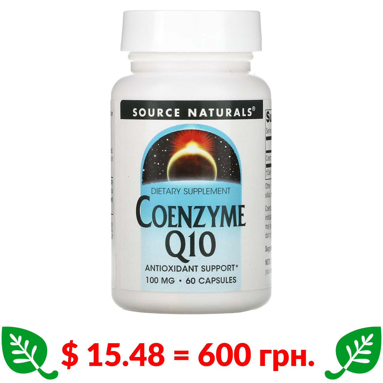 $ 15.48 = 600 грн. Source Naturals, коэнзим Q10, 100 мг, 60 капсул