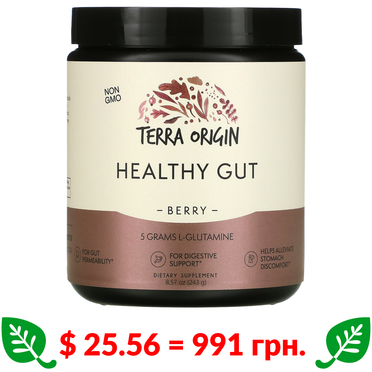 $ 25.56 = 991 грн. Terra Origin, добавка для нормализации функций желудочно-кишечного тракта, вкус ягод, 243 г (8,57 унции)