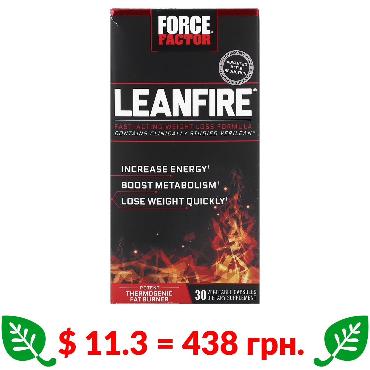 $ 11.3 = 438 грн. Force Factor, LeanFire, формула для быстрого снижения веса, 30 растительных капсул