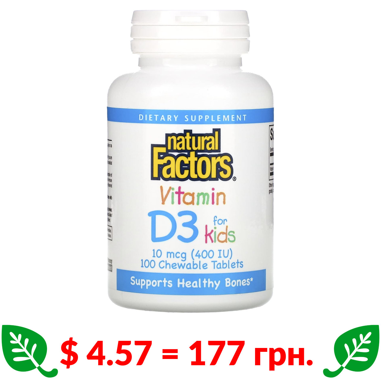 $ 4.57 = 177 грн. ????️ у кошику ????️ Natural Factors, витамин D3, клубничный вкус, 10 мкг (400 МЕ), 100 жевательных таблеток