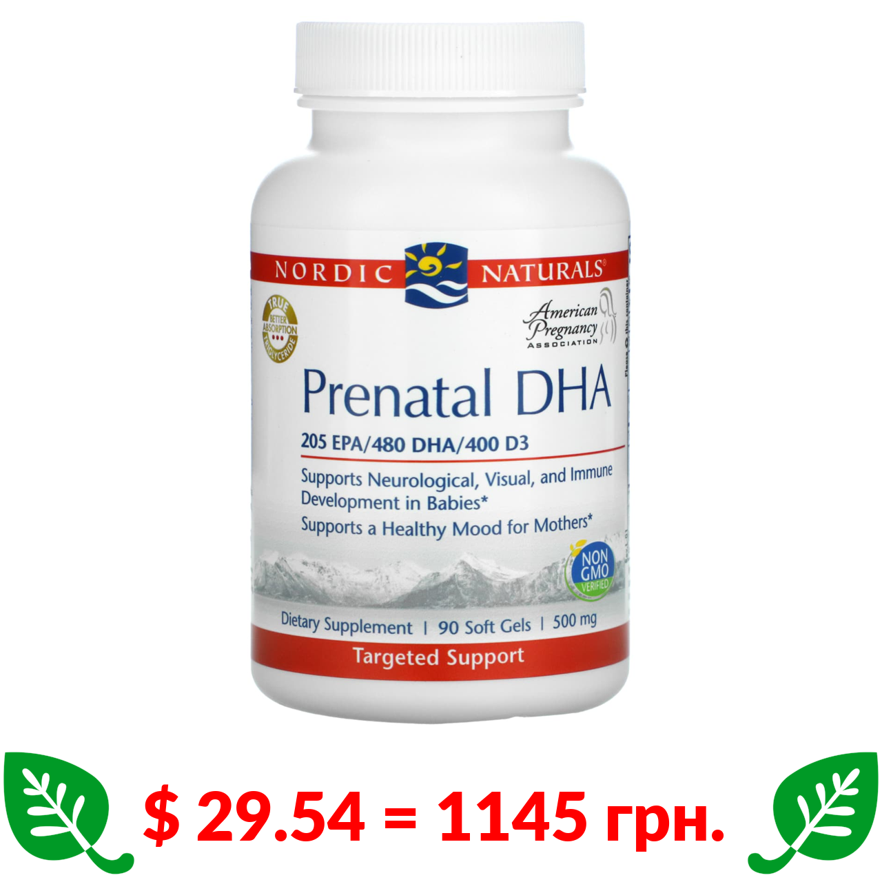 $ 29.54 = 1145 грн. Нордик Натуралс, докозагексаеновая кислота для беременных, 240 мг, 90 капсул