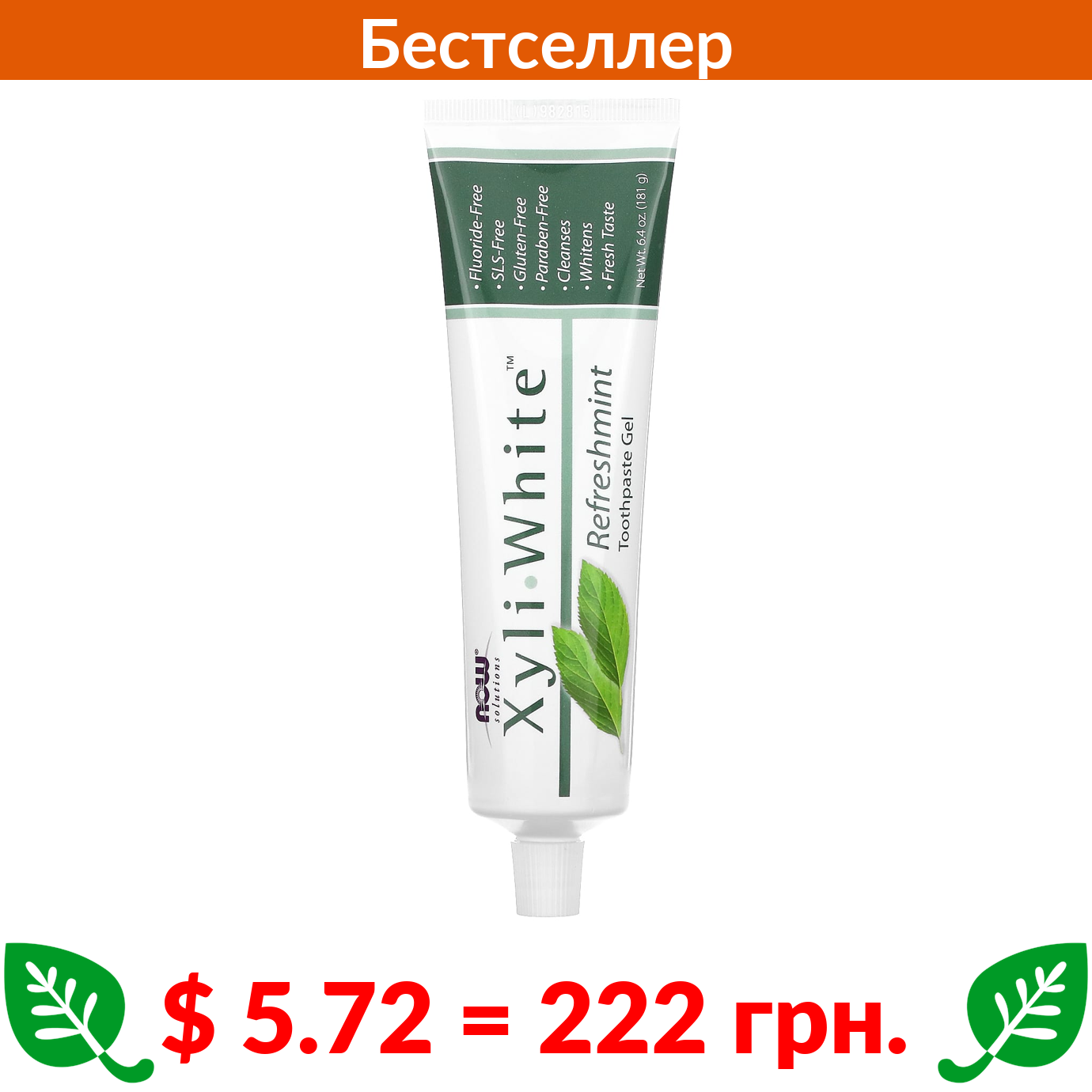 $ 5.72 = 222 грн. Now Foods, Solutions, XyliWhite, зубная гель-паста, освежающая мята, 181 г (6,4 унции)