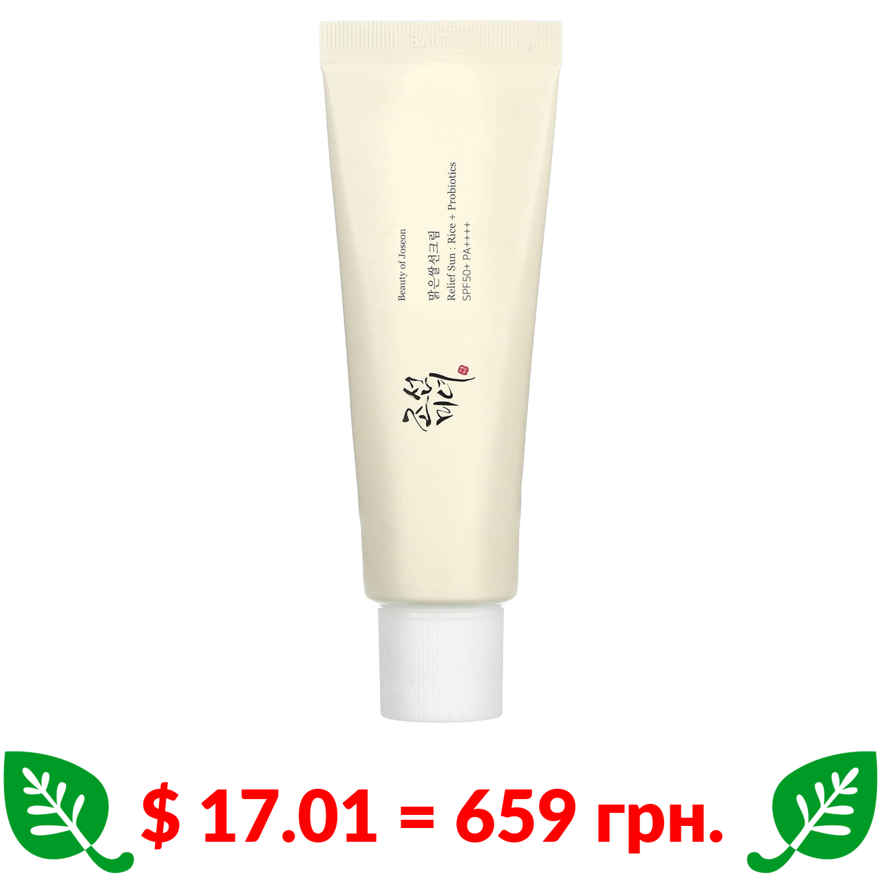$ 17.01 = 659 грн. Бьюти оф Джосеон, Relief Sun: Рис + пробиотики, SPF 50+ PA ++++“ 50 мл