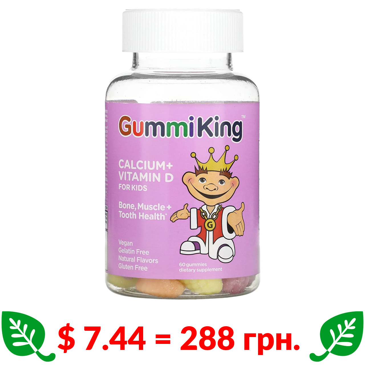 $ 7.44 = 288 грн. ????️ у кошику ????️ Гумми Кинг, кальций и витамин D для детей, 60 жевательных мармеладок