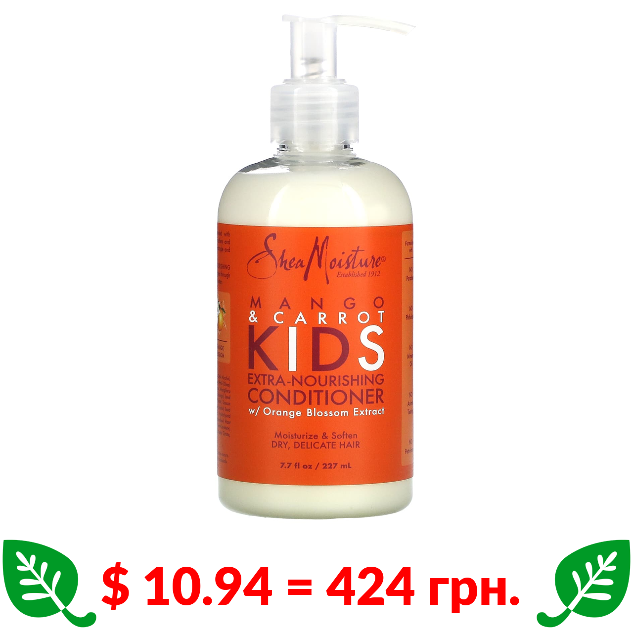 $ 10.94 = 424 грн. SheaMoisture, экстра-питательный кондиционер, для детей, манго и морковь, 237 мл (8 жидк. унций)