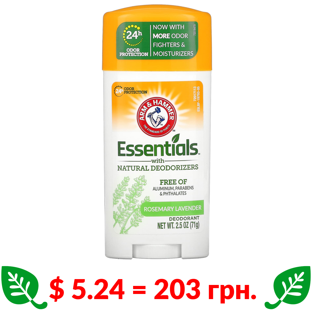 $ 5.24 = 203 грн. Арм энд Хаммер, Essentials, дезодорант с натуральными дезодорирующими компонентами, розмарин и лаванда, 71 г (2,5 унции)