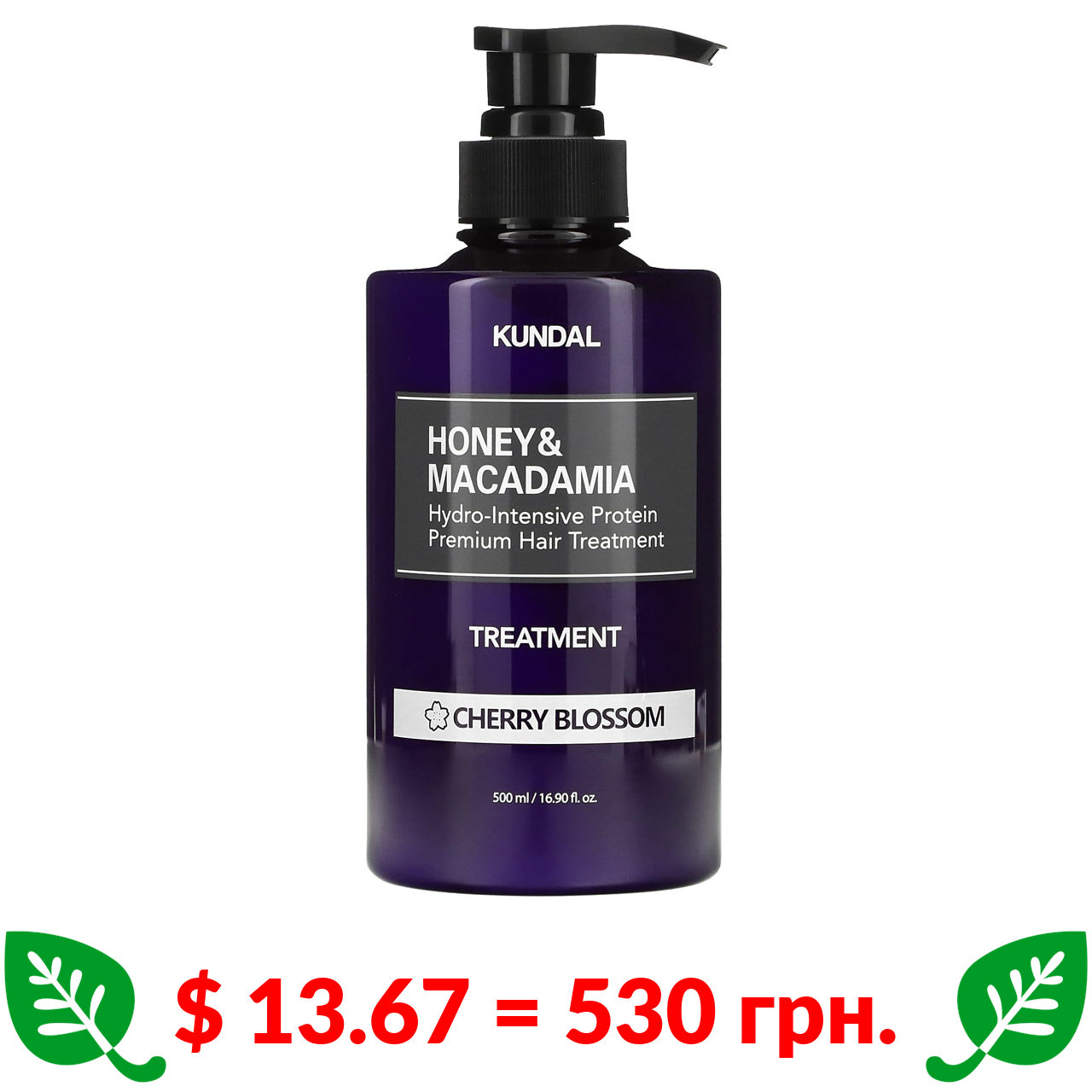 $ 13.67 = 530 грн. Кундал, средство для ухода за волосами, мед и макадамия, вишневый цвет, 500 мл (16,90 жидк. унции)