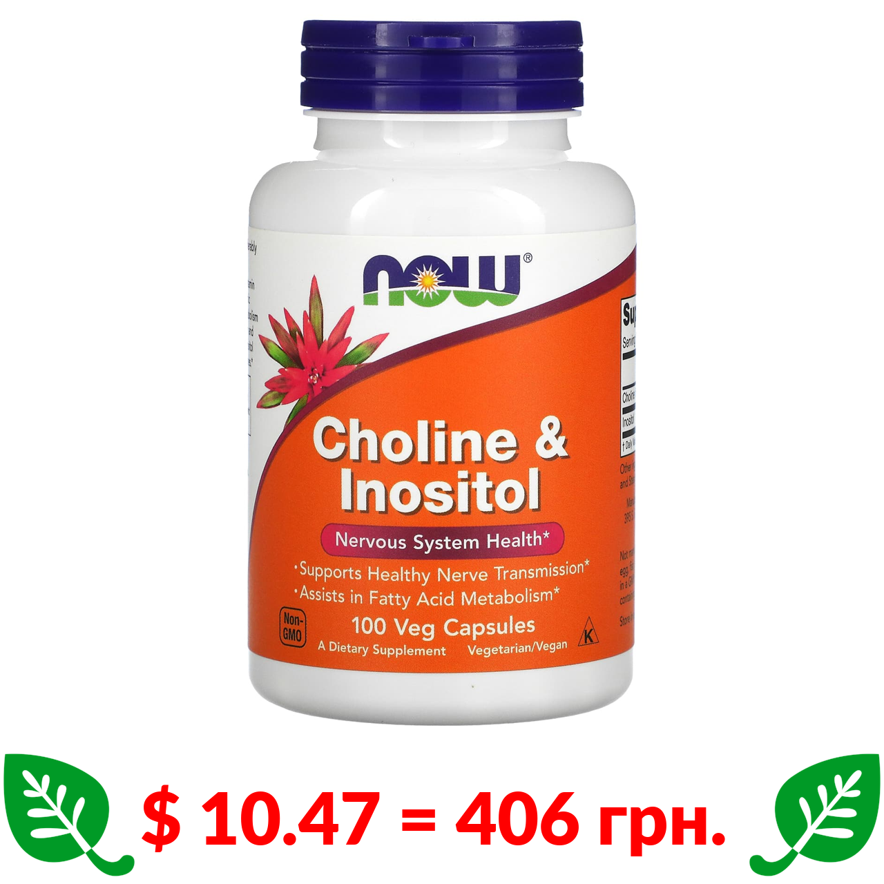 $ 10.47 = 406 грн. Now Foods, Холин и инозитол, 100 растительных капсул