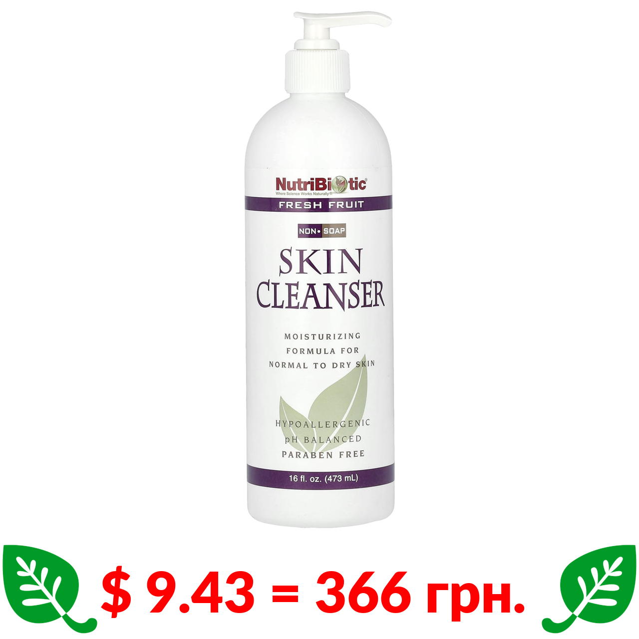 $ 9.43 = 366 грн. НутриБиотик, очищающее средство для кожи, без мыла, без отдушки, 473 мл (16 жидк. унций)
