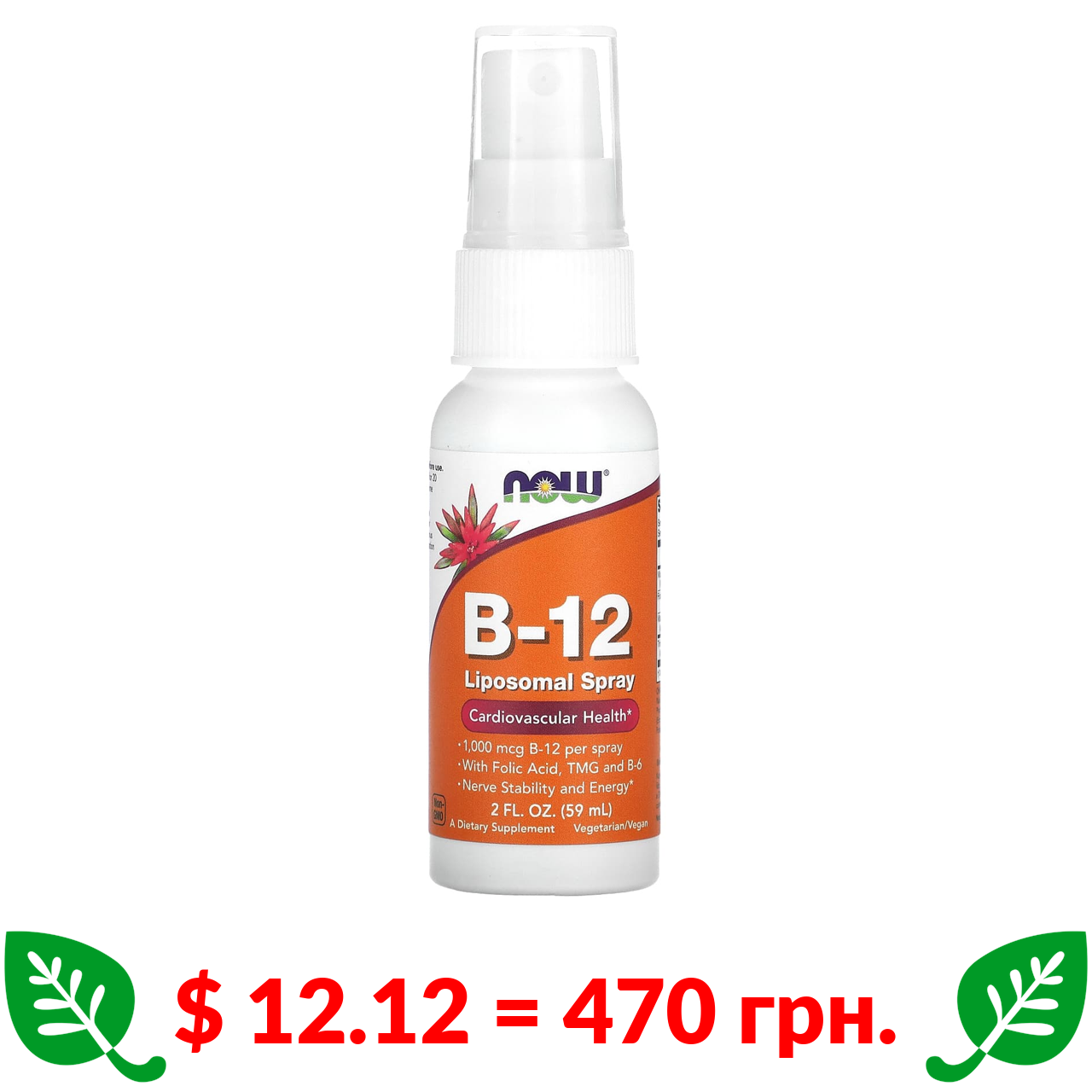 $ 12.12 = 470 грн. Now Foods, Липосомальный спрей с витамином B12, 1000 мкг, 59 мл (2 жидк. унции)