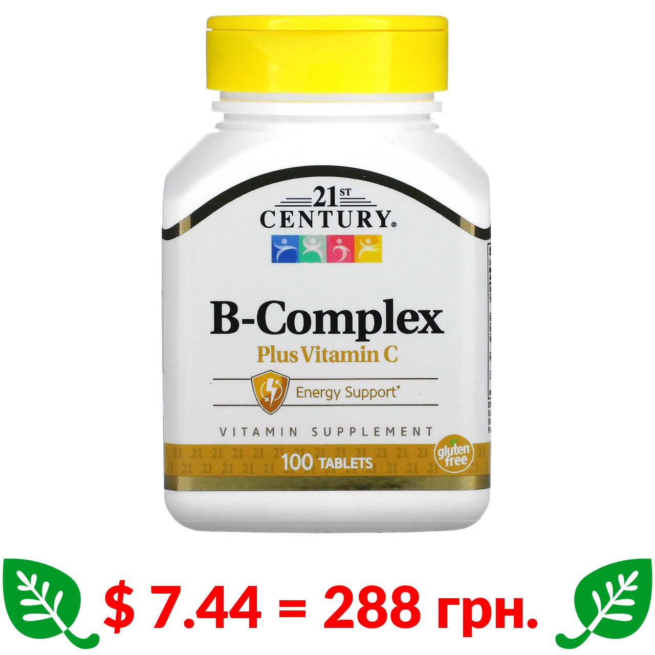 $ 7.44 = 288 грн. 21st Century, комплекс витаминов группы B с витамином C, 100 таблеток