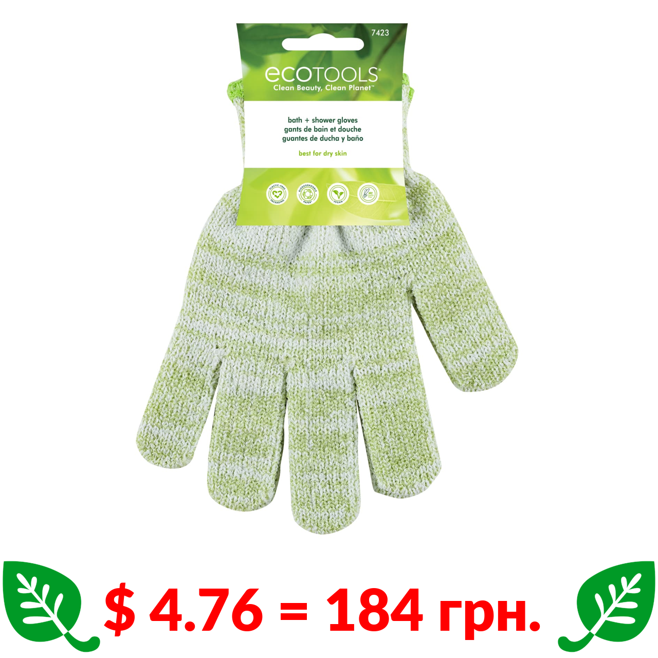 $ 4.76 = 184 грн. EcoTools, массажные перчатки для ванны и душа, 1 пара