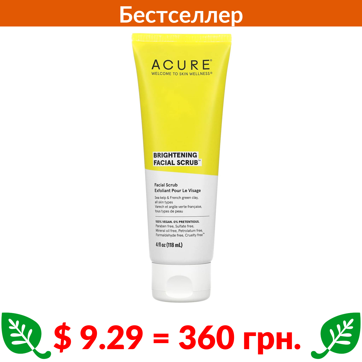 $ 9.29 = 360 грн. ACURE, Brilliantly Brightening, скраб для лица, 118 мл (4 жидк. унций)