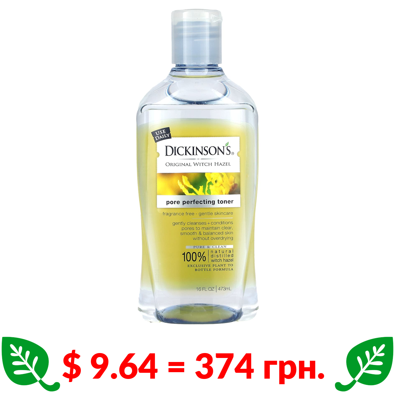 $ 9.64 = 374 грн. Дикинсон Брэндс, Оригинальный тоник Witch Hazel для очищения пор, 473 мл (16 жидких унций)