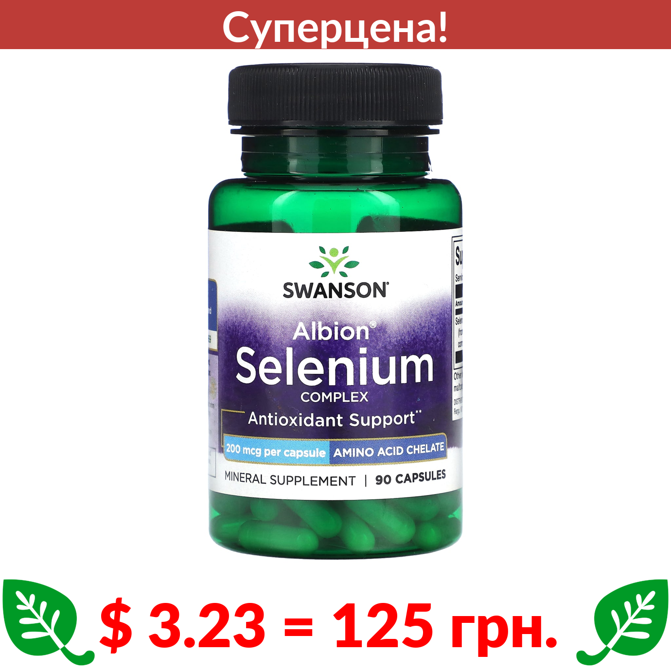 $ 3.23 = 125 грн. ???? cуперакція! ???? Swanson, Albion Selenium Complex, 200 мкг, 90 капсул
