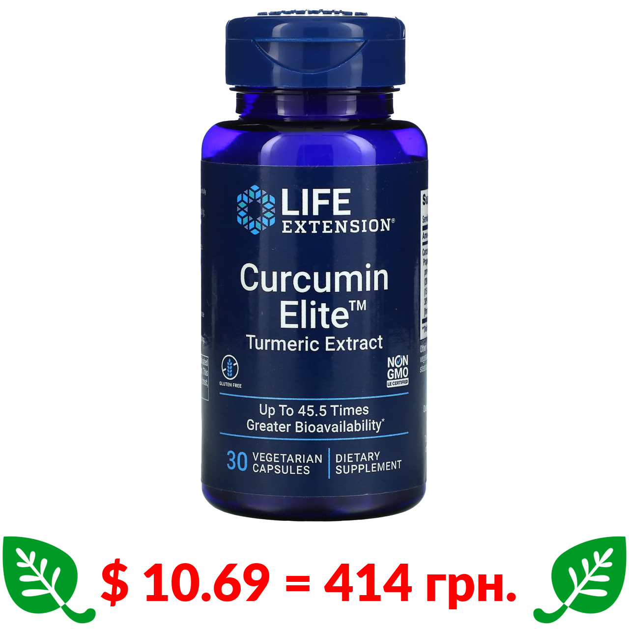 $ 10.69 = 414 грн. ????️ у кошику ????️ Life Extension, Curcumin Elite, экстракт куркумы, 30 вегетарианских капсул