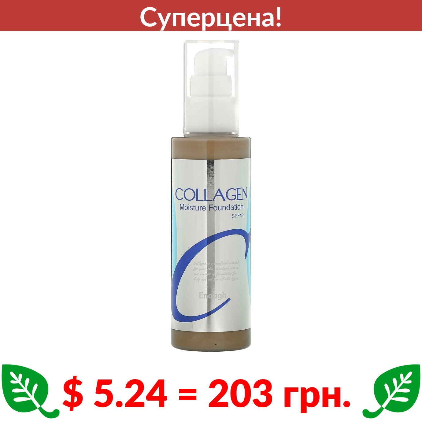 $ 5.24 = 203 грн. ???? cуперакція! ???? Инаф, Коллаген, увлажняющая тональная основа, SPF 15, No 21, 100 мл (3,38 жидк. унции)