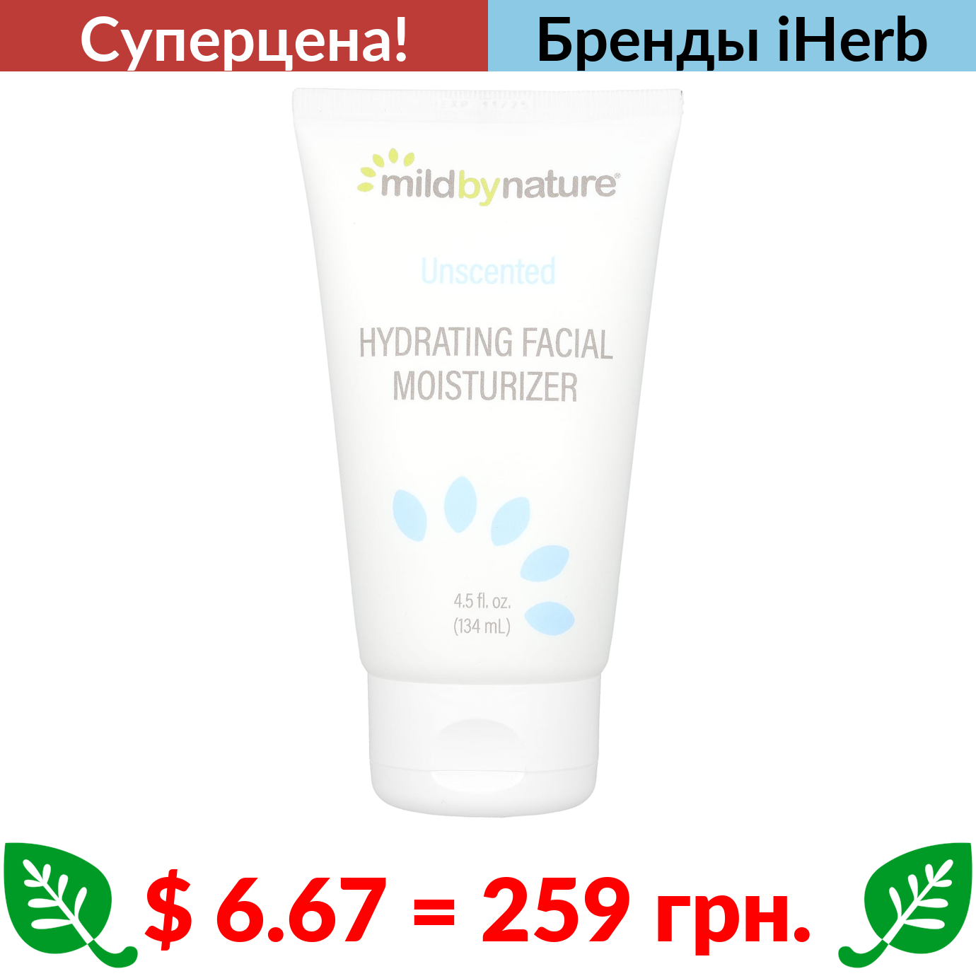 $ 6.67 = 259 грн. ???? cуперакція! ???? Mild By Nature, увлажняющий крем для лица, без запаха, 134 мл (4,5 жидк. унции)