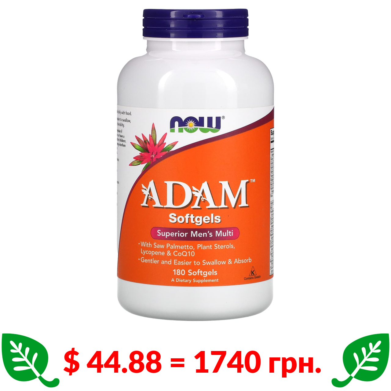$ 44.88 = 1740 грн. Now Foods, ADAM, превосходные мультивитамины для мужчин, 180 мягких таблеток